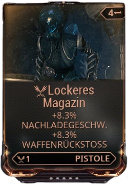 Lockeres Magazin ist eine PVP-Mod für Sekundärwaffen. Diese erhöht die Nachladegeschwindigkeit und den Waffenrückstoss um bis zu 50% auf Rang 5.