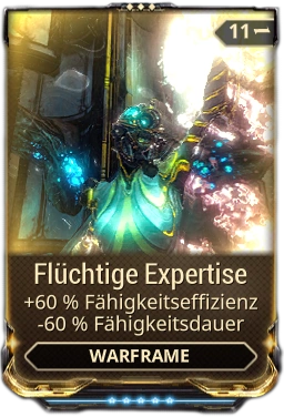 Bemerkung: Man kann eine Flüchtige Expertise mit geringem Rang nehmen, um das Limit zu erreichen und gleichzeitig die negativen Auswirkungen für die Fähigkeitsdauer gering zu halten. Andersherum können Loki und Nyx ihre arkanen Helme anlegen ebenso wie eine Flüchtige Expertise mit vollem Rang, um das Limit und einen freien Modplatz zu erreichen, allerdings mit Kosten von -60% Fähigkeitsdauer.
