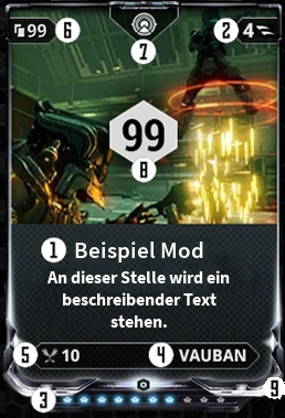 - Kapazität & Polarität: Die Punktekosten welche das Mod verbraucht und deren Polarität.