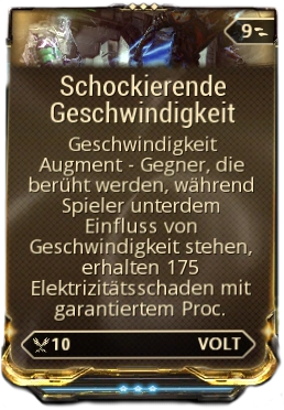 Schockierende Geschwindigkeit ist ein Warframe Augment Mod für Volt mit dem alle Gegner die man berührt