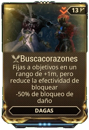 Buscacorazones is a Cónclave/PvP Daggers Melee only Mod that decreases blocking effectiveness but enables automatic lock-on for melee attacks.