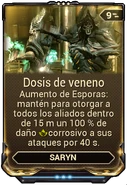 Toxina es envenenamiento que infecta a un enemigo con un daño en el tiempo que provoca Daño Base × (Multiplicador de Daño Tóxico ÷ 2) por pulso, con 9 pulsos de daño de