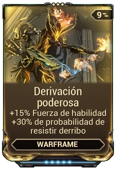 Derivación poderosa es un mod Exilus raro y de doble estadística que incrementa la fuerza de habilidad y otorga cierta probabilidad de resistir los derribos.