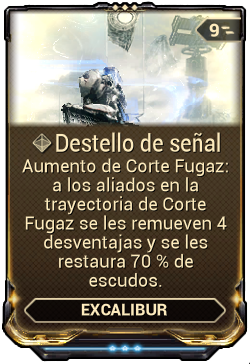 - Destello de señal (Aumento Corte fugaz de Excalibur): Los aliados en el camino de Corte Fugaz son removidos de 4 desventajas y restaura 100% de escudos.