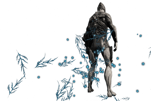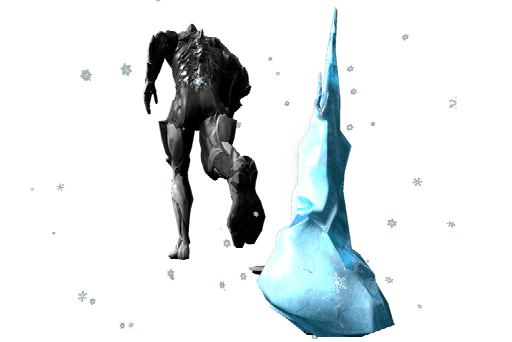 El Warframe deja a su paso un rastro de huellas con carámbanos de hielo.