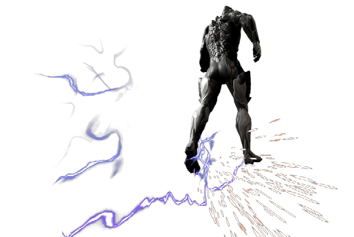 El Warframe deja a su paso un rastro de huellas con electricidad.
