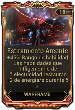 Estiramiento Arconte es un mod Arconte para Warframe que aumenta el rango de habilidad y otorga brevemente la regeneración de energía cuando una habilidad inflije daño