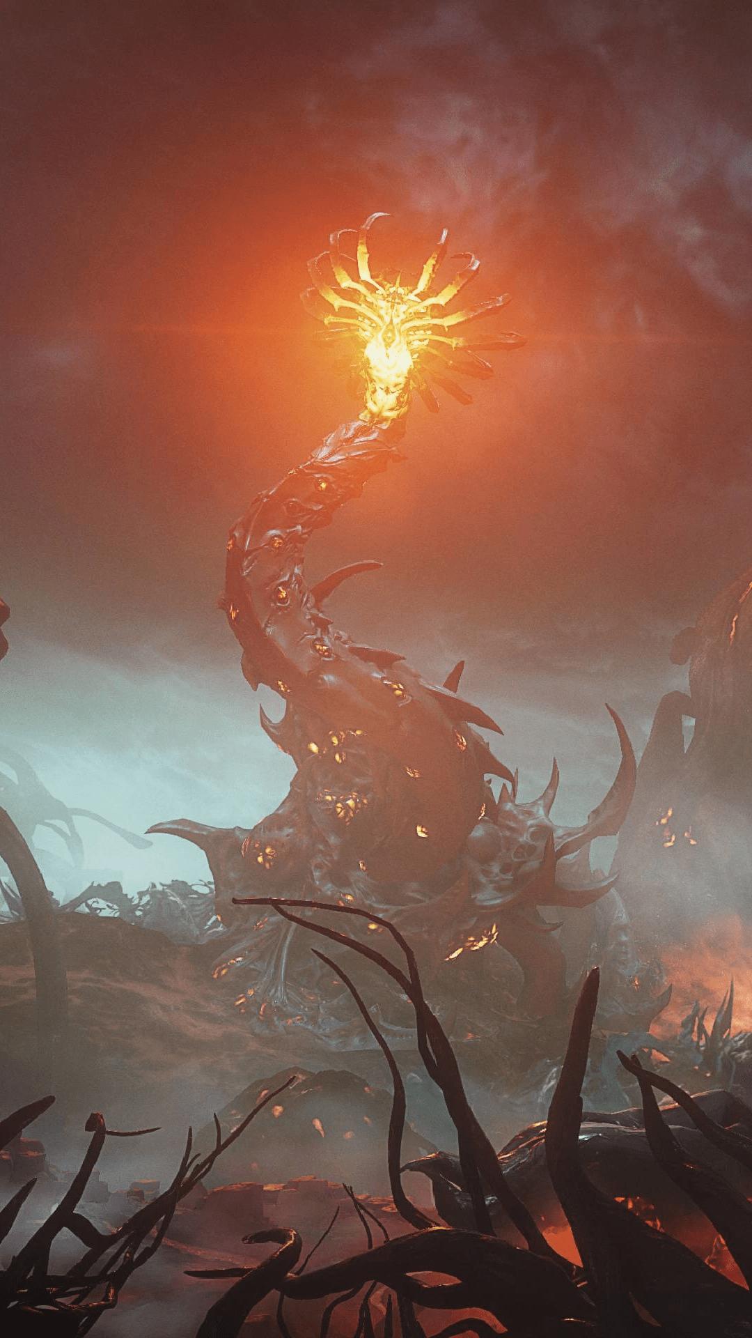 Infestación infestada gigante masculina que se ve en el cielo de Deriva Cambion. Representa el ciclo de "Día" del paisaje, y está atrapado en una batalla eterna con su hermana Vome en la que no puede haber vencedores.