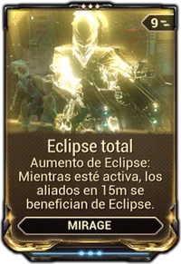 - Eclipse Lunar (presionar) reduce a la mitad el costo de energía por segundo de Prisma, aplicado luego de los modificadores de Eficiencia de habilidad y Duración de habilidad.