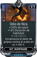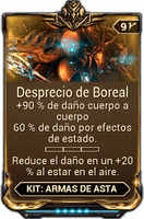 Bonificación del conjunto: El kavat marca una zona de 3 / 6 / 9 / 12 metros cada 60 / 45 / 30 / 15 segundos que inflige 50 / 100 / 150 / 200 de daño por segundo a los enemigos.