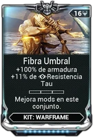 - Con 2 equipados, aumenta los efectos de de Fibra Umbral, Intensificación Umbral y Vitalidad Umbral en 25%.