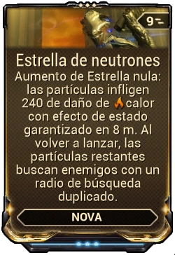 Estrella nula Crea partículas de antimateria que orbitan a Nova y buscan objetivos cercanos. Cada partícula otorga +5% de reducción de daño a la salud de Nova, se acumula hasta 90%. |