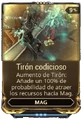 Después de obtener suficiente reputación para alcanzar el título de Perfecto, los Tenno serán capaces de tener acceso a los Mods de aumento para sus Warframe favoritos, incluyendo Equinox, Hydroid, Mag, Nyx, Oberon, Trinity, Valkyr, Wukong, y Zephyr.