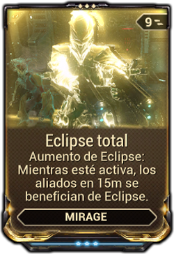 Pacificar & Provocar En la forma nocturna reduce el daño infligido por enemigos cercanos. En forma diurna incrementa la fuerza de habilidad de aliados cercanos. Drenaje de energía por enemigo: 1.5 / 1.25 / 1 / 0.5 s-1 Drenaje de energía por poder: 5 / 4.33 / 3.66 / 3 |