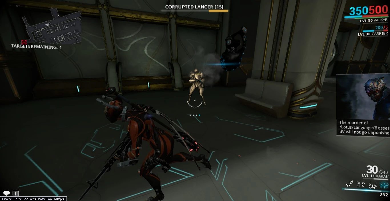 - Sus subtítulos también fallan como una indicación cuando falla su objetivo. Dirá /Lotus/Language/Bosses/(Boss Name) en vez del nombre del jefe actual.