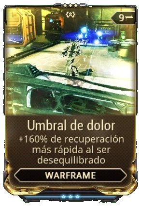 Umbral de dolor es un mod Exilus obtenido en El Índice que aumenta la recuperación de tambaleo de tu Warframe.