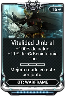 Vitalidad Umbral es un mod de conjunto, una variante del mod Vitalidad que aumenta la salud máxima del warframe y otorga resistencia al daño