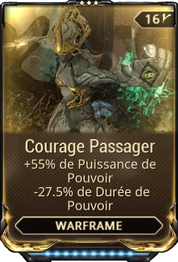 Courage Passager augmente la puissance des capacités d'une Warframe en réduisant la durée en contrepartie.