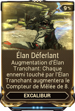 Excalibur a amélioré ses compétences dans l'art Tenno de la lame, recevant +10% de vitesse d'attaque et +10% de dégâts sur les armes suivantes :