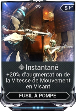 Instantané est un mod pour Catégorie:Armes - Fusil à Pompe utilisable en PvE & PvP qui permet d'augmenter la vitesse de mouvement quand vous visez.