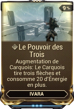 Puissance Trois (Ivara, Augmentation de Carquois): Le Carquois tire trois flèches et consomme 20 points d'Énergie en plus. Mise à jour 18.5 (04-03-2016)