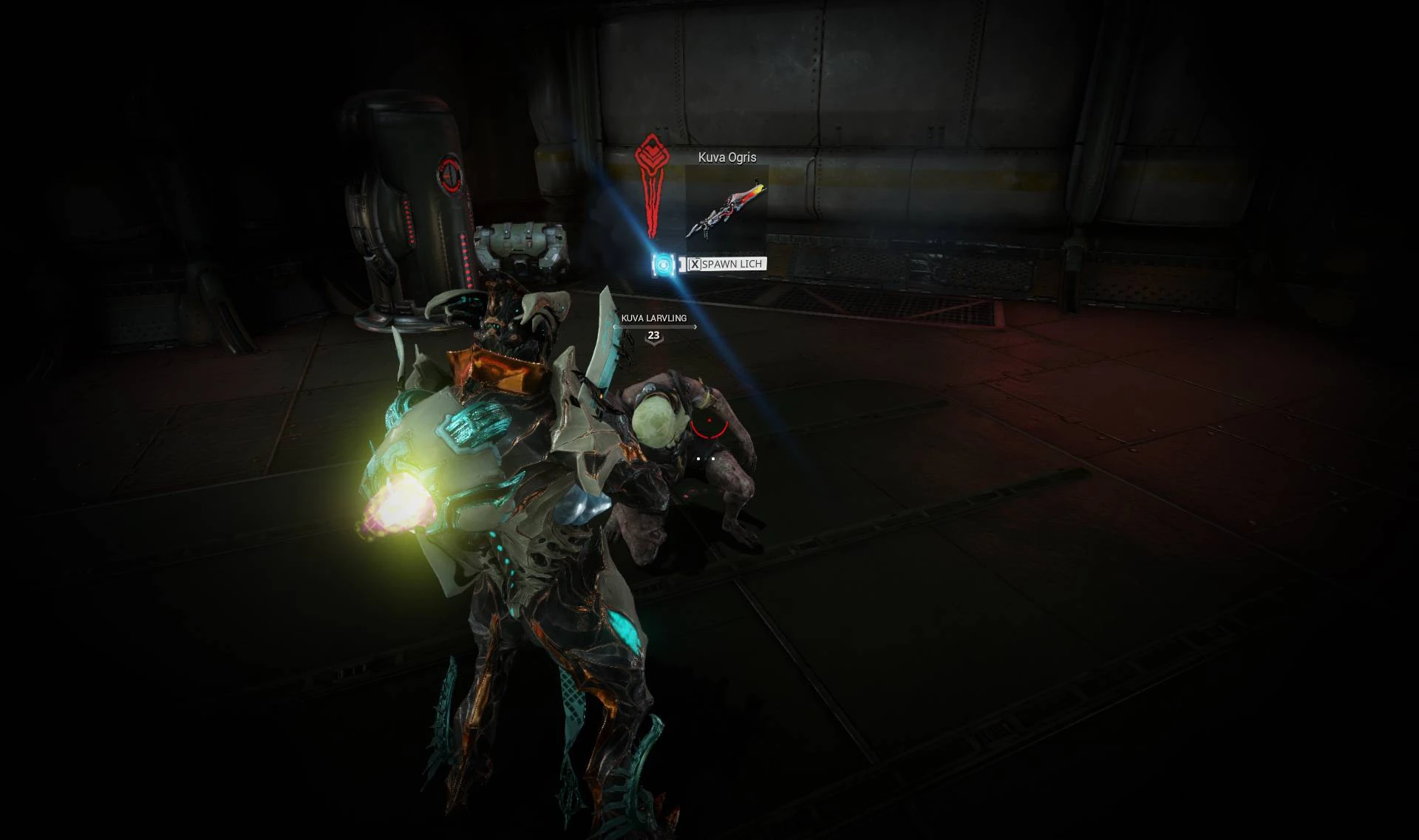Kuva à la fin de la mission, même si le Larvling n'est pas exécuté. Lorsque le joueur est à proximité, le Larvling vaincu affichera également l'icône et le nom de l'Arme Kuva que la Liche Kuva créée possédera.