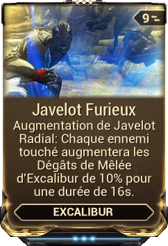 Javelot Furieux, exemple de Mod d'Augmentation de Warframe.