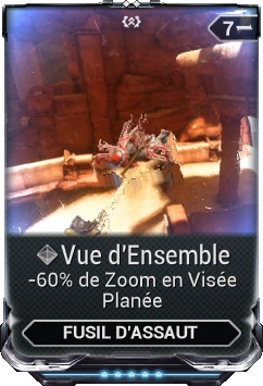 Vue d'Ensemble est un mod pour les fusils utilisable en JcE (PvE en anglais) et JcJ (PvP) qui diminue le Zoom lors d'une Visée Planée.