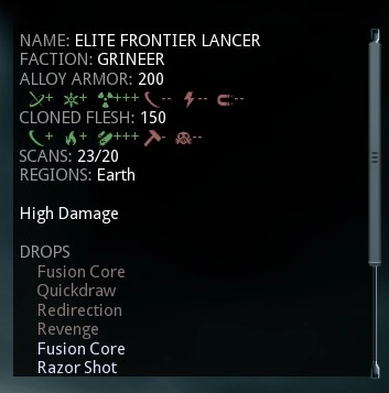 Néhány tartalom automatikusan bekerül a megjelenéssel (Modulok, warframe-ek, őrszemek, fegyverek), de az ellenségekről, főnökökről és tárgyakról a játékosnak kell információkat gyűjtenie.