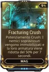 - Dato che infligge danno Magnetico, Crush infligge meno danno contro unità Grineer ma risulta molto efficace contro i Corpus sopratutto se applica l'effetto stato.