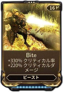 - Prior to Hotfix 14.0.7 (07-22-2014), Bite could only be obtained via transmutation. DE has stated that this mod being transmutation-exclusive was unintentional and added it to the Feral クブロウ's drop table in response.