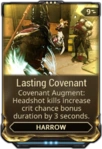 Covenant Proteja aliados próximos com força de energia que absorve todo o dano e o converte para um bônus de chance crítica para todos sob o efeito Covenant. Tiros na cabeça são aprimorados ainda mais. |