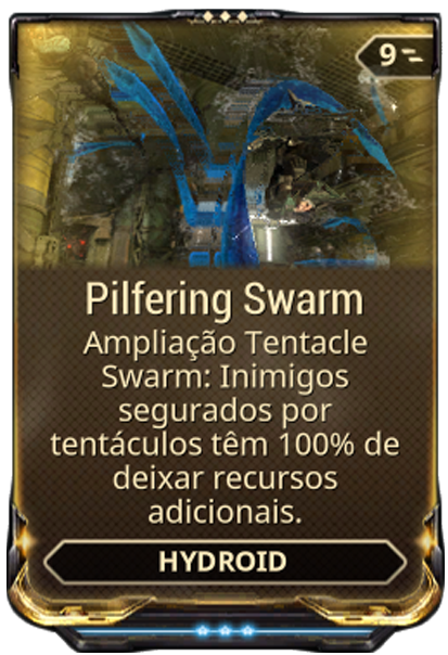 Pilfering Swarm é um mod de ampliação de Hydroid que garante a Tentacle Swarm uma chance de render drop adicional de inimigos mortos enquanto eles estão presos pelos tentáculos.