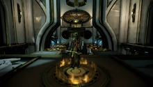 - Deixar seu Warframe no outro lado da sala e usar o seu Operador para ativar a almofada incandescente também ativará o portal, o qual o Warframe irá cair. Uma maneira muito fácil de completar o teste.
