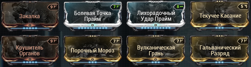 Стальной Натиск и некоторые модификаторы, установленные на оружии ближнего боя.