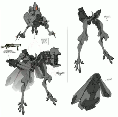 Сам Вэй Хек выглядит как большой дрон, с человеческой головой и механическими руками. Его фрейм Терра - это большой птицеподобный робот, вооруженный гораздо более мощным дробовиком Хек.
