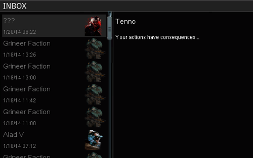 Джейд были парой, которые тоже подверглись заражению и стали Варфреймами. А на тот момент, Джейд была беременна, из-за чего её ребёнок тоже был заражен (Подробнее в квесте Нефритовые Тени). - При покупке предметов у