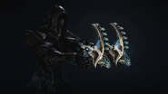 Gauss's signature burst-fire dual launchers that fire a pair of homing rockets with high status chance and a large 7.2-meter explosion radius. Uniquely, this weapon reloads faster while sprinting, and reloads even faster when wielded by Gauss.