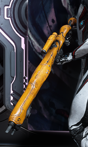 Grineer slug assault rifle with unique homing capabilities. Its Alternate Fire launches a tracer round that sticks to NPCs or enemies, making all subsequent shots home in on the marked target. Successful homing shots gain a critical chance bonus.