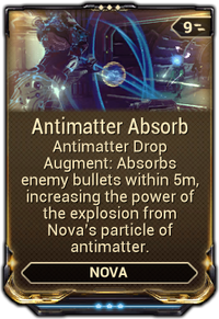 Nova is an antimatter themed Warframe who is somewhat fragile with low shield capacity, fair health and lacks in defensive abilities. In return, she features extremely powerful offensive abilities capable of demolishing entire waves of enemies. Nova materialized in Update 9.0 (2013-07-13).