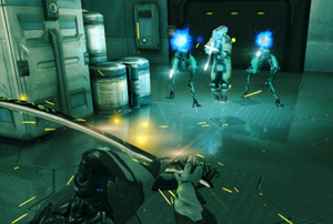 MOAs are bipedal turrets, some of which carry rapidly firing plasma guns or high-power railguns. Rather than taking cover, which would be impractical given the in-line mounting of their weapons, these screeching killers will simply close the distance, continuously laying out a barrage of fire whilst letting their shields take the brunt of the beating. Fortunately, their personal defense shielding is relatively fragile, as is their physical frame. Some facilities have also scanners at doors, activating various traps and hazards should a Tenno pass unknowingly over them.