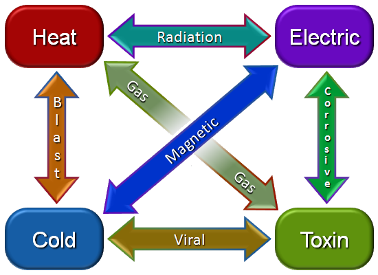 Fire, Cold, Electric, Toxin.