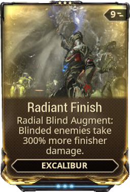 Additionally, Finisher attack damage is dependent on the type of melee weapon used and can be increased by Finishing Touch as well as several Ability Augments (e.g. Excalibur's Radiant Finish).