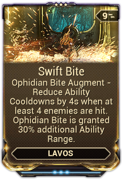 Toxin status effects inflicted on enemies by Ophidian Bite enhance Catalyze's damage.