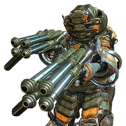Fittingly for a military power like the Grineer, they have developed a wide variety of weapons and equipment used in their ceaseless conflicts with the Tenno, Corpus, and Infested. This ranges from simple pistols to heavier rifles, shotguns, and machine guns; to missile launchers, flamethrowers, melee weapons with superheated surfaces, hydraulically-assisted axes, hammers, and flail-like whips with hooked grinding blades.