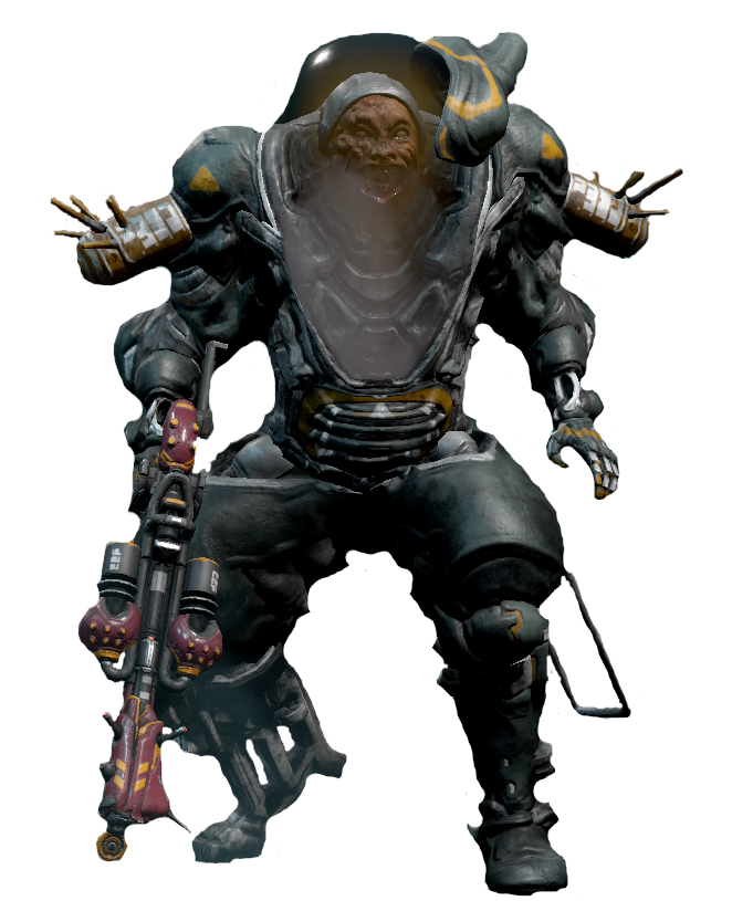 During The Old War, the Orokin were desperate to defeat their Sentient assailants, so a new breed of Grineer was created from the genes of an individual who had managed to defeat one.[1] These militarized Grineer would be deployed in the Orokin's war efforts but proved futile against the Sentient faction's strategies and defenses.