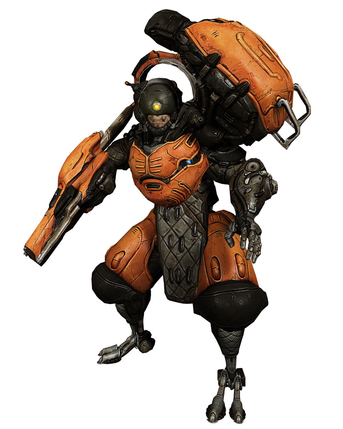 As the products of ancient, half-remembered Orokin technology, Grineer are produced rather than born, and in industrial quantities along with their weapons and equipment. Each one is genetically defective to some degree, their genome both originally stunted by their creators, and further damaged by the invasive cloning procedures they themselves have been using to birth each generation in the centuries after the fall of the Orokin. As a result, they have a life cycle that is limited to only a fraction of a normal human lifespan and are prone to a host of degenerative disorders such as decaying limbs and skin or reduced intelligence. They compensate for this by the widespread use of crude cybernetic prosthetics and robust augmentations. Indeed, it could be argued that the Grineer are better at fixing broken bodies than they are at creating ones that function to begin with. Most of their equipment, weapons, and armor are technologically crude but undeniably effective, and many Tenno have fallen because they underestimated the firepower of Grineer machines.