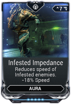 Infested Impedance is an aura mod that reduces the speed of Infested enemies within a 16 meters radius around the user.