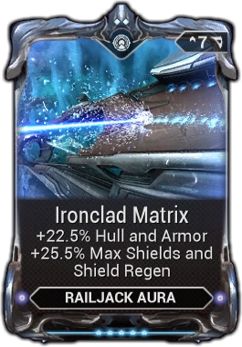 Ironclad Matrix is a Plexus Aura mod that provides an increase to the Railjack's total Hull, Armor, Shields and Shield Regen.