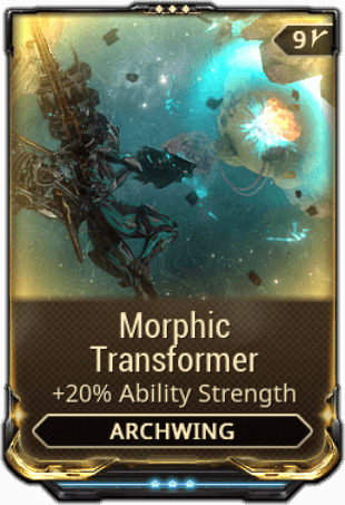 The Morphic Transformer mod increases the Ability Strength of Archwing abilities by 5% per rank for a maximum of 20% at rank 3.